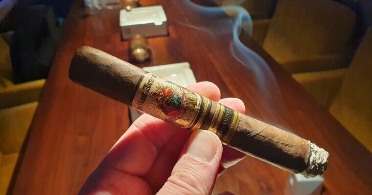 Nach dem Anzünden startet die Zigarre mit holzigen und leicht toastigen Noten. Schon nach kurzer Zeit kommen Mokka-Aromen dazu. Der Rauch ist cremig und schmeckt fast wie ein Cappuccino mit einem Hauch Orange. Insgesamt ein toller Auftakt, der Lust auf die nächsten Züge macht.