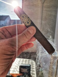Und dann kommt der Kaltzug: Er gibt bereits einen verheißungsvollen Vorgeschmack mit Noten von Erde, Röstnoten und etwas Karamell. Und dann – Feuer frei! Der erste Zug offenbart einen Schub Würze, Leder und süßer Nuancen. Eine komplexe Mischung aus Toast, Nougat und einer feinen salzigen Note gesellt sich dazu. Was soll jetzt noch kommen? Noch mehr Geschmack! Im weiteren Verlauf entwickelt sich nämlich eine leicht torfige Note, die sich harmonisch mit der Grundwürze verbindet. Dazu die karamellige Süße: Ich bin im 7. Zigarrenhimmel. Tolle Aromen, die sich perfekt mit der rustikalen Grundstruktur verweben. Gegen Ende behält der Smoke zwar seine mittelkräftige Intensität, durch die hinzukommende Espresso-Note entsteht jedoch das Gefühl, dass sie an Stärke zunimmt.