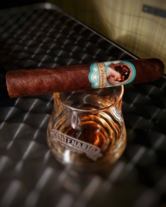 Die Robusto wurde mit einer Anilla verziert, die das sinnliche Gesicht einer schönen Dame zeigt. Das kaffeebraune Deckblatt aus Ecuador, ein H-2000, schimmert verführerisch im Licht. Es fühlt sich samtig an – eine feine Haptik, die diese Schönheit innehat. Der Kaltgeruch – eine delikate Mischung aus Lebkuchen, dunklem Brot und einem Hauch von Zimt – verspricht bereits, was die nächsten Genussmomente bereithalten.