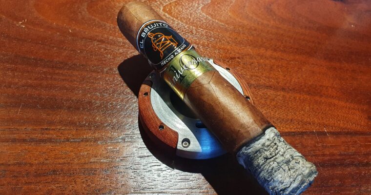 Schon beim Anzünden legt sie los: Die Feuerannahme ist problemlos, der Zugwiderstand genau so, wie er sein soll. Beim ersten Zug entfaltet sich ein cremiger, leicht holzig anmutender Rauch, der sich angenehm im Mundraum verteilt. Kaffee-Noten stehen im Vordergrund, elegant begleitet von Zeder und einer ledernen Erdigkeit. Und als ob das nicht genug wäre, wirbelt der kleine Hexenmeister – so die Bedeutung von „El Brujito“ – noch eine untergründige Pfeffrigkeit sowie eine feine Süße in die Mischung. Das Ergebnis: ein ausgewogenes, vielschichtiges Aroma, das bis zum letzten Drittel trägt.